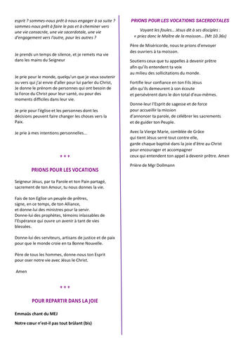 Et nous quel temps prenons nous pour écouter le Seigneur, sommes nous prêts à le laisser ouvrir notre esprit ? sommes nous prêt à nous engager à sa suite ? sommes nous prêt à faire le pas et à cheminer vers une vie consacrée, une vie sacerdotale, une vie d'engagement vers l'autre, pour les autres ?