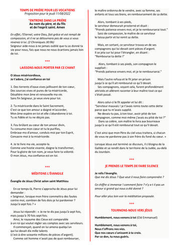 Pour aller plus loin dans la méditation voir la proposition pièce jointe.