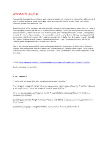 Abraham, l'ami de Dieu, veut, par son intercession, connaître Dieu en profondeur. Il désire tellement le comprendre, lui rendre justice à ses propres yeux et aux yeux du monde, qu'il lui fait les demandes les plus audacieuses ». Seigneur fait que comme Abraham nous cherchions toujours à rechercher ta justice envers les hommes pour que nous agissions comme tu le souhaites.