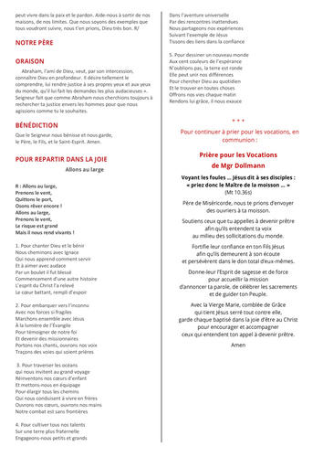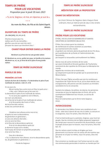 Ô Père, fais que l’Église accueille avec joie les nombreuses inspirations de l’Esprit de ton Fils et, qu’en étant docile à ses enseignements, elle prenne soin des vocations au ministère sacerdotal et à la vie consacrée.