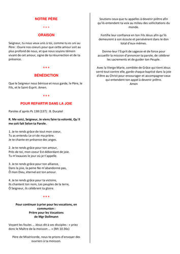 nous t'adressons avec confiance nos prières et nos intercessions.
