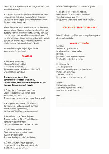 « Je t’aime, Seigneur, et l’unique grâce que je te demande est de t’aimer éternellement… Mon Dieu, si ma langue ne peut pas répéter à tout instant que je t’aime, je veux que mon cœur te le répète chaque fois que je respire » (Saint Jean-Marie Vianney)