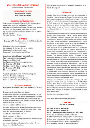 OUVERTURE DU TEMPS DE PRIÈRE