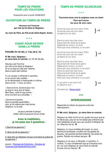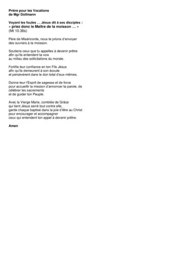 Prière pour les Vocations