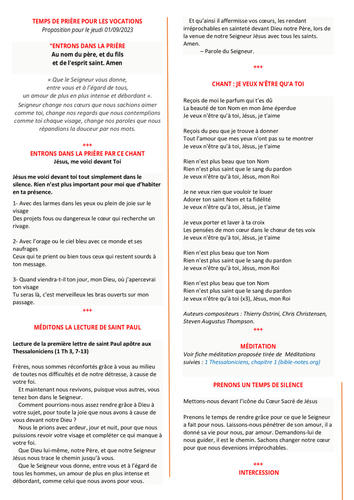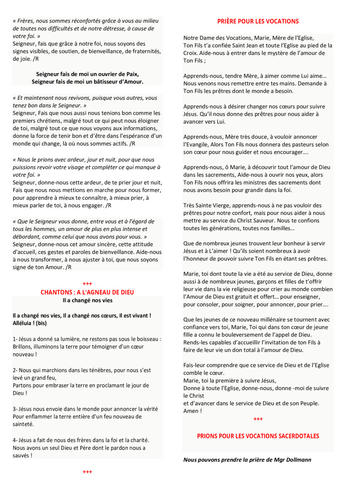 Seigneur, donne-nous cette ardeur, de te prier jour et nuit, Fais que nous nous mettions en marche pour nous former, pour apprendre à mieux te connaître, à mieux prier, à mieux parler de toi, à nous engager. /R