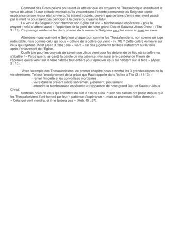 Nous le prions avec ardeur, jour et nuit, pour que nous puissions revoir votre visage et compléter ce qui manque à votre foi.