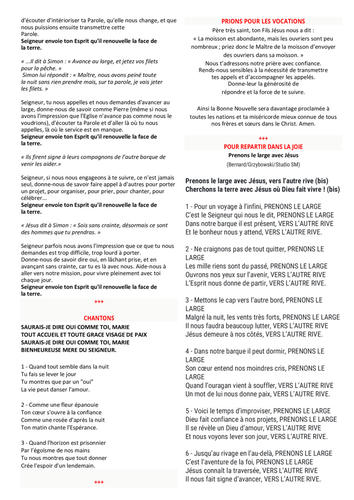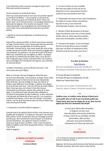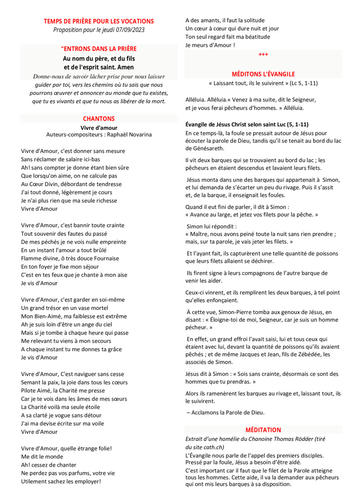 Seigneur, tu nous appelles et nous demandes d'avancer au large, donne-nous de savoir comme Pierre (même si nous avons l'impression que l'Eglise n'avance pas comme nous le voudrions), d'écouter ta Parole et d'aller là où tu nous appelles, là où le service est en manque.