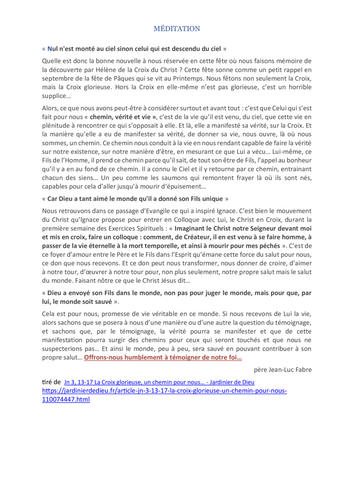 « Nul n’est monté au ciel sinon celui qui est descendu du ciel, le Fils de l’homme. »
