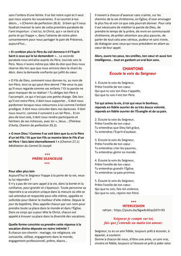 Envoie ton Esprit, pour que chacun sache discerner le chemin et trouve la force, l’audace et la confiance de répondre à ton appel. Seigneur, nous te prions.