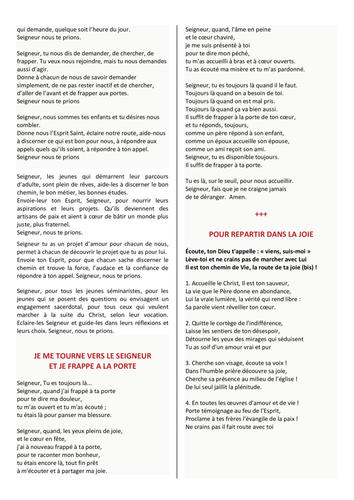 Seigneur, pour tous les jeunes séminaristes, pour les jeunes qui se posent des questions ou envisagent un engagement sacerdotal, pour tous ceux qui veulent marcher à la suite du Christ, selon leur vocation.