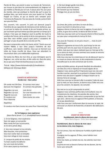 Seigneur nous avons parfois l’impression que nos vies sont lourdes à porter, pourtant tu es présent à chaque instant, donne-nous de savoir t’appeler à chaque instant car tu donnes force et courage.