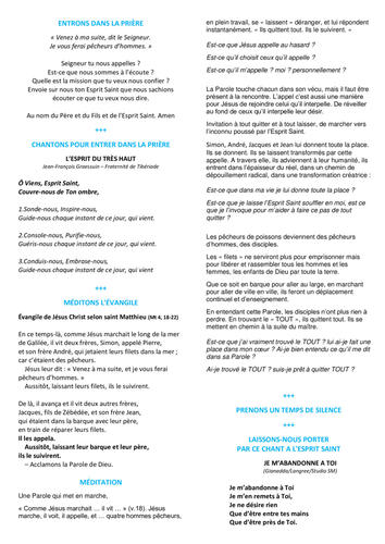 Envoie sur nous ton Esprit Saint que guidé par lui, nous sachions porter la bonne nouvelle, que nous sachions, nous aussi, appeler, ou simplement par les gestes et les paroles dans nos vies nous sachions donner l’envie de te connaitre, et de te suivre.