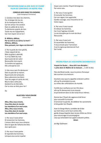 Tu as appelé chacun par son nom ; pour chacun, nous te louons et nous te supplions : garde-les dans la fidélité à Ton nom ; Toi qui les as consacrés pour qu’en Ton nom, ils soient nos pasteurs, donne leur force, confiance et joie pour accomplir leur mission.