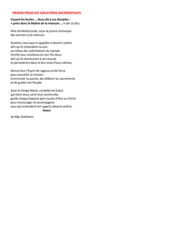 PRIONS POUR LES VOCATIONS SACERDOTALES