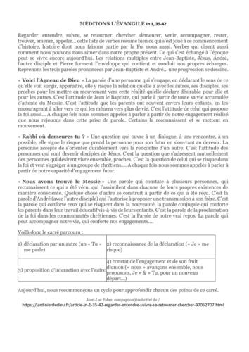 Seigneur nous sommes en recherche de toi, mais peut être pas au bon endroit, aide-moi à ouvrir mon cœur à tes appels, à répondre à cette question « que cherchez-vous » par « Toi Seigneur ». Aide-moi à discerner ma vocation.
