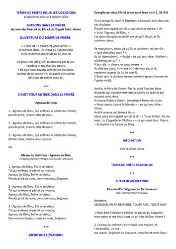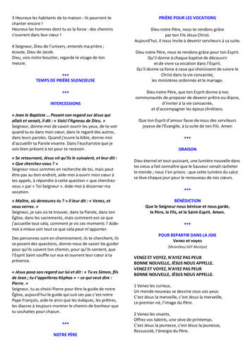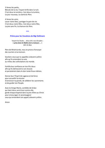 Dieu notre Père, que ton Esprit donne à nos communautés de proposer de devenir prêtre ou diacre, d’inviter à la vie consacrée,