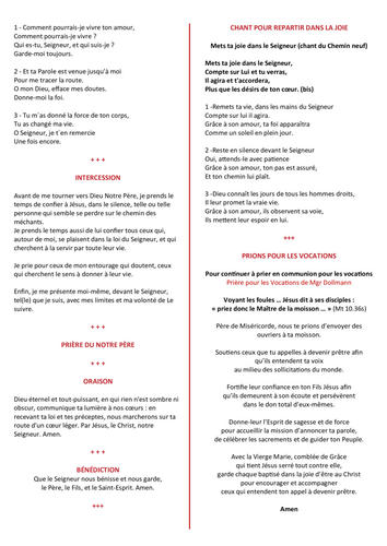 Père de Miséricorde, nous te prions d’envoyer des ouvriers à ta moisson.