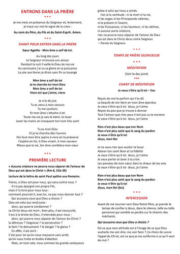 Dieu notre Père, tu es la source de toute vie. En toi se trouvent notre bonheur et notre joie. Donne-nous d’accueillir le don de ton amour, Jésus Christ, en qui nous sommes tes enfants.