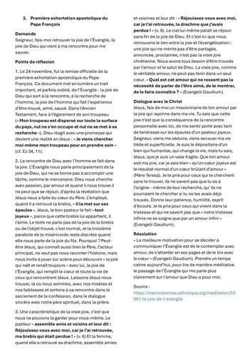 Ô Père, fais que l’Église accueille avec joie les nombreuses inspirations de l’Esprit de ton Fils et, qu’en étant docile à ses enseignements, elle prenne soin des vocations au ministère sacerdotal et à la vie consacrée.