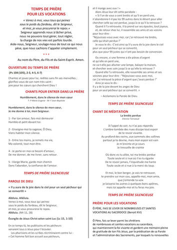 Prière pour les Vocations