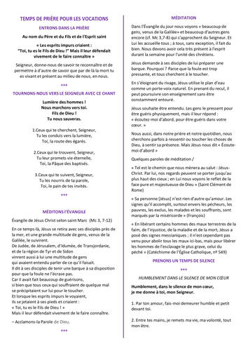 TEMPS DE PRIÈRE POUR LES VOCATIONS