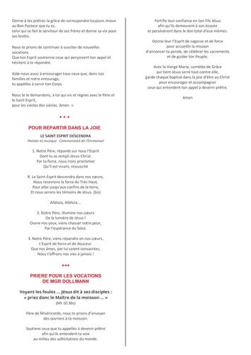 Nous te prions de continuer à susciter de nouvelles vocations.