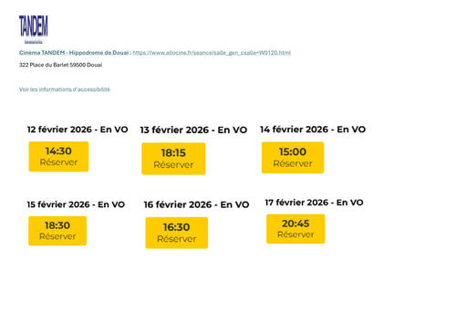 Retrouvez toute la programmation et les tarifs sur Cinémas et séances du film Les Dimanches à Douai (59500) - AlloCiné